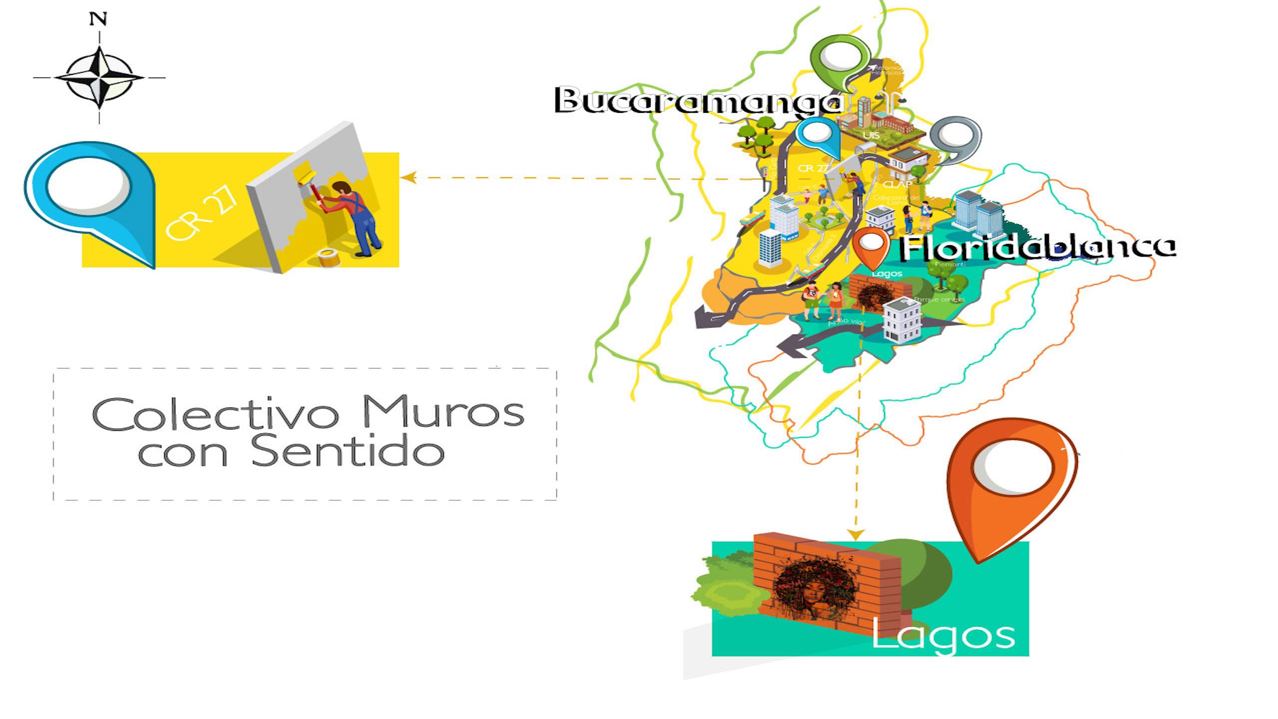 La intervención de Muros con sentido principalmente es en barrios del sector norte de Bucaramanga, un sector vulnerable y con índices altos de problemas sociales. Los muros han servido de herramienta de transformación para los jóvenes y niños, evidenciando la problemática sociales y los caminos de prevención a través del arte.