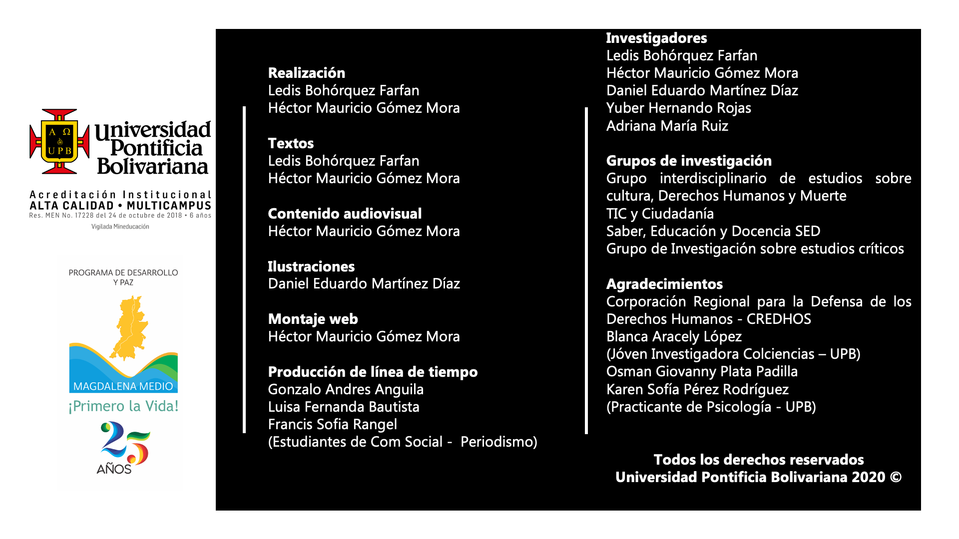Proyecto de investigación “Reconstruir Lo Que Se Perdió” se llevó a cabo por un grupo interdisciplinario conformado por docentes investigadores de la Universidad Pontificia Bolivariana en convenio con el Programa de Desarrollo y Paz del Magdalena Medio.