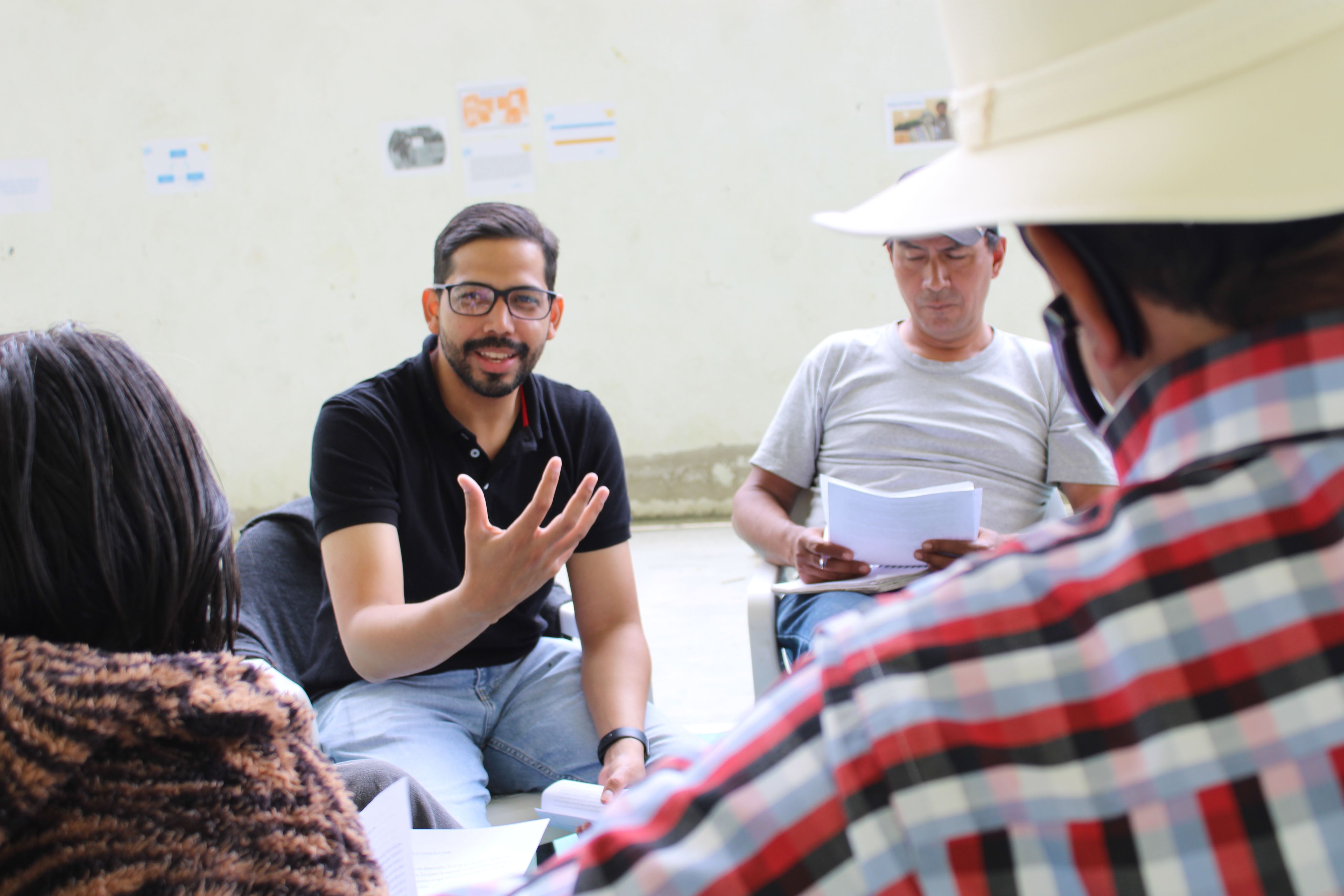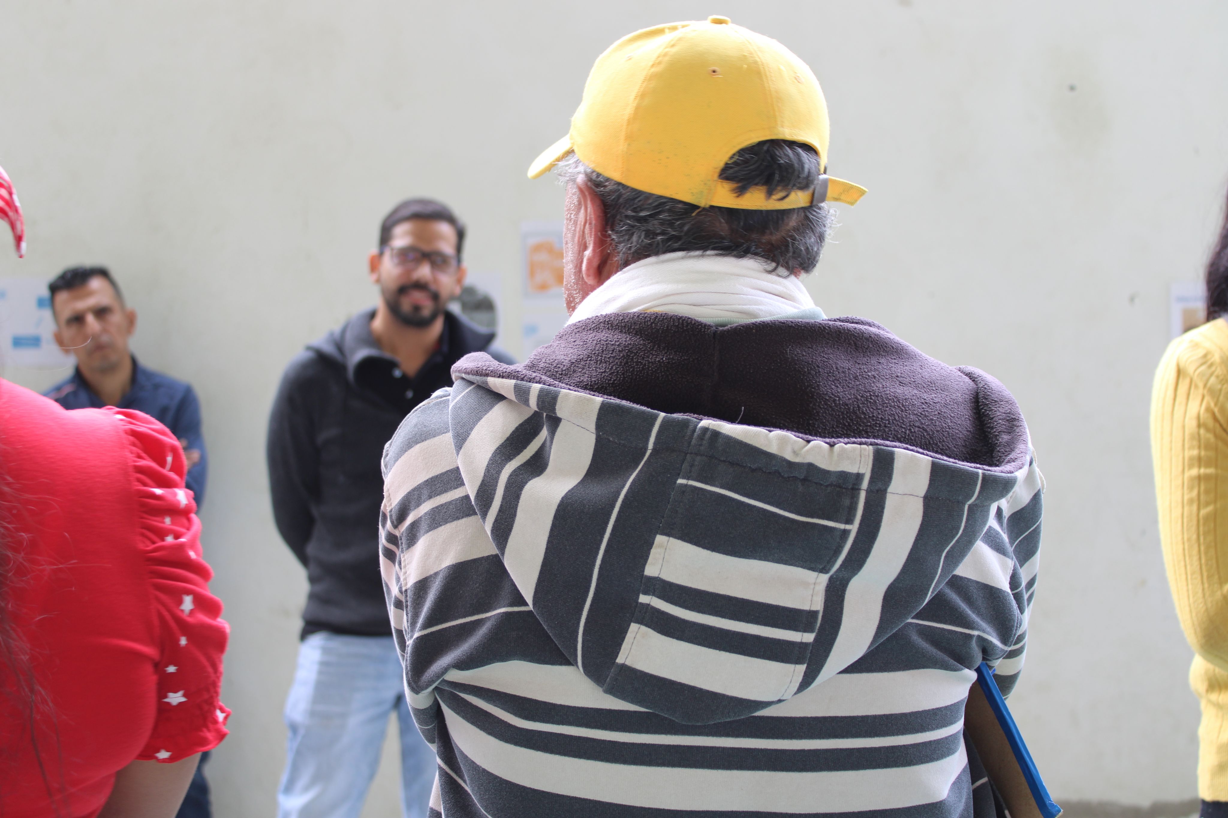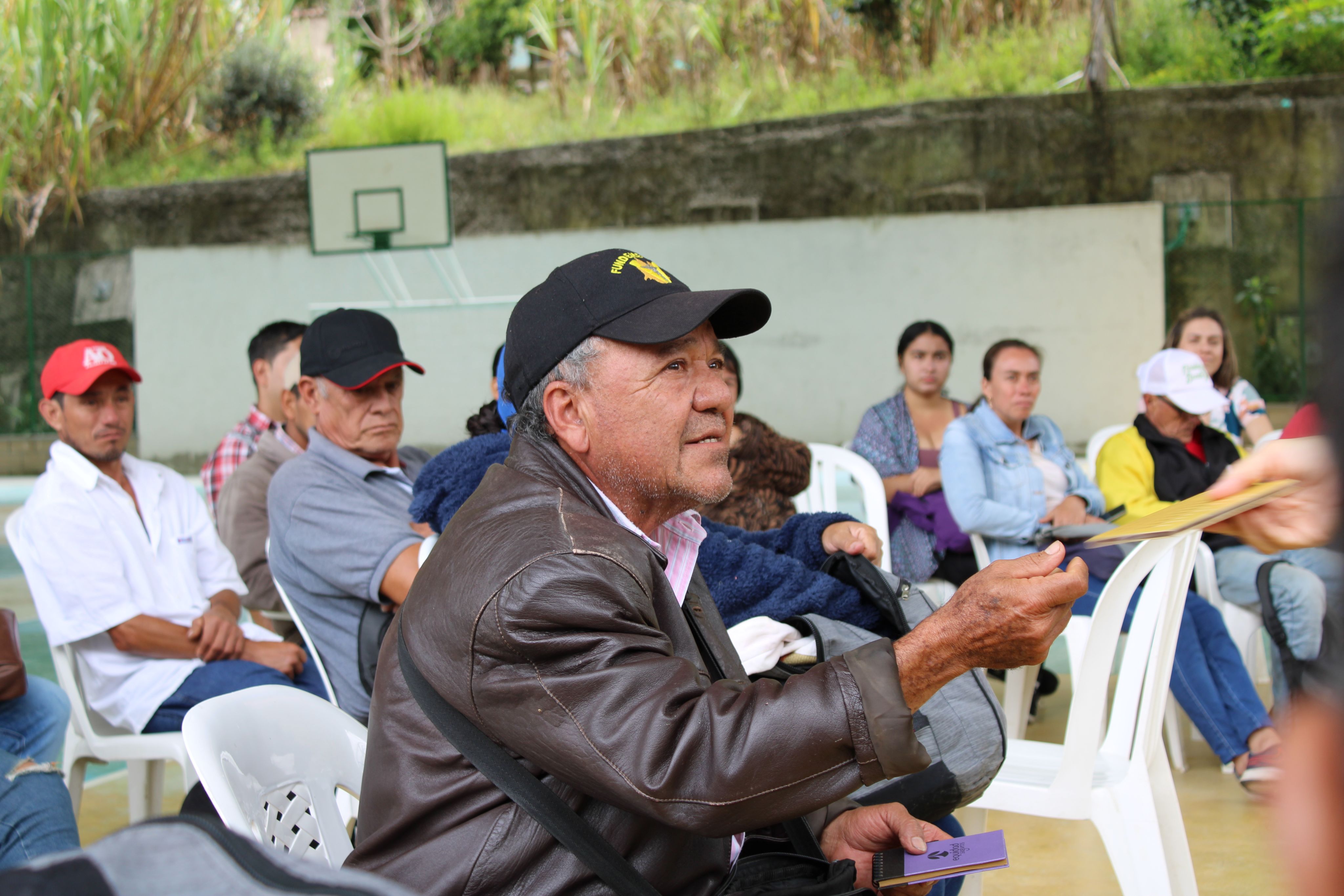 Mientras un grupo desarrolló el tema de la reconciliación —su importancia, qué se necesita para que se logre, qué obstáculos hay para alcanzarla y qué se ha hecho en el territorio en relación al tema—, Eliseo, integrante de la Mesa de Víctimas de Suratá, con grabadora en mano, tomó el rol de periodista en trabajo de reportería con su equipo.