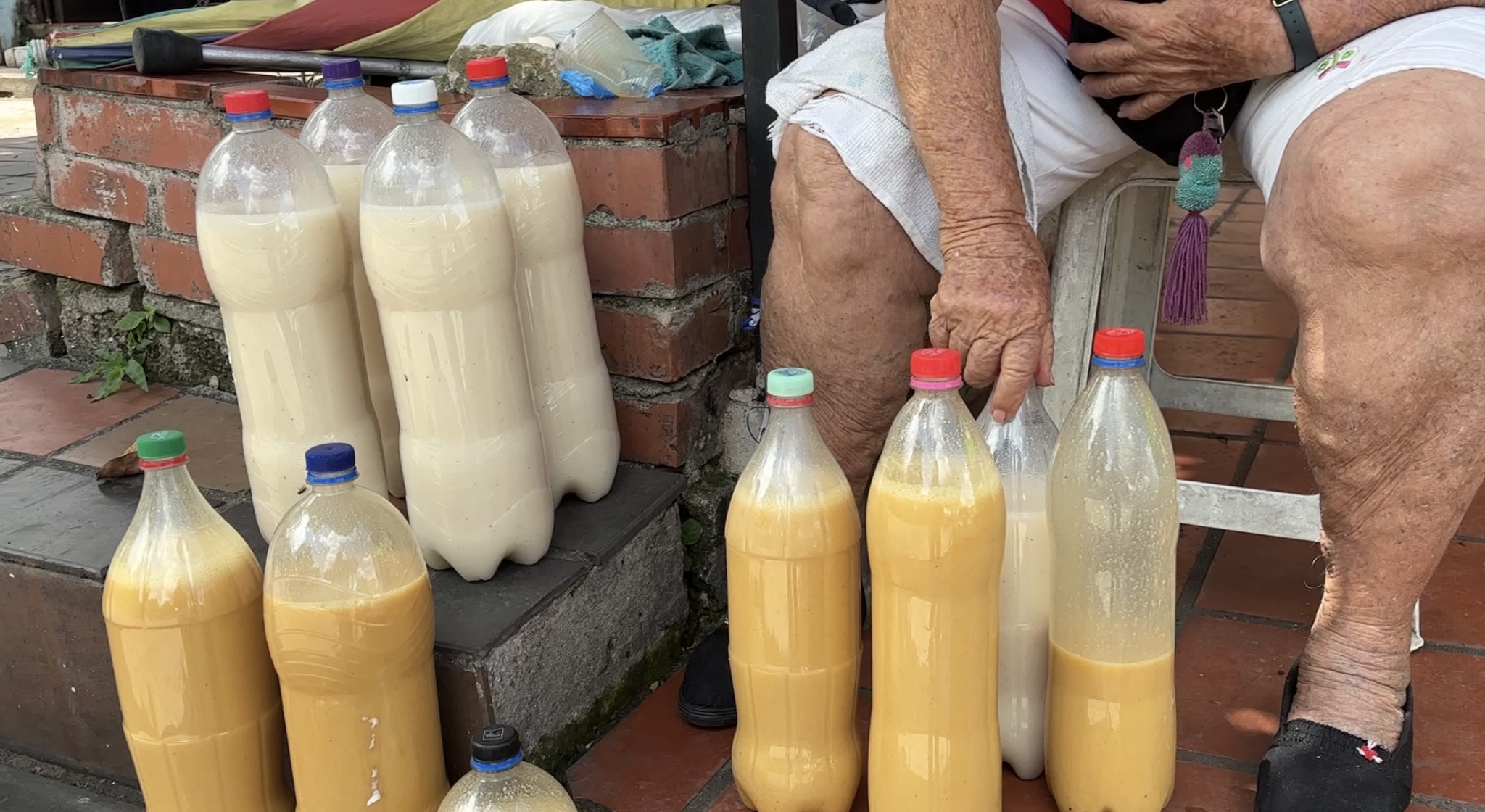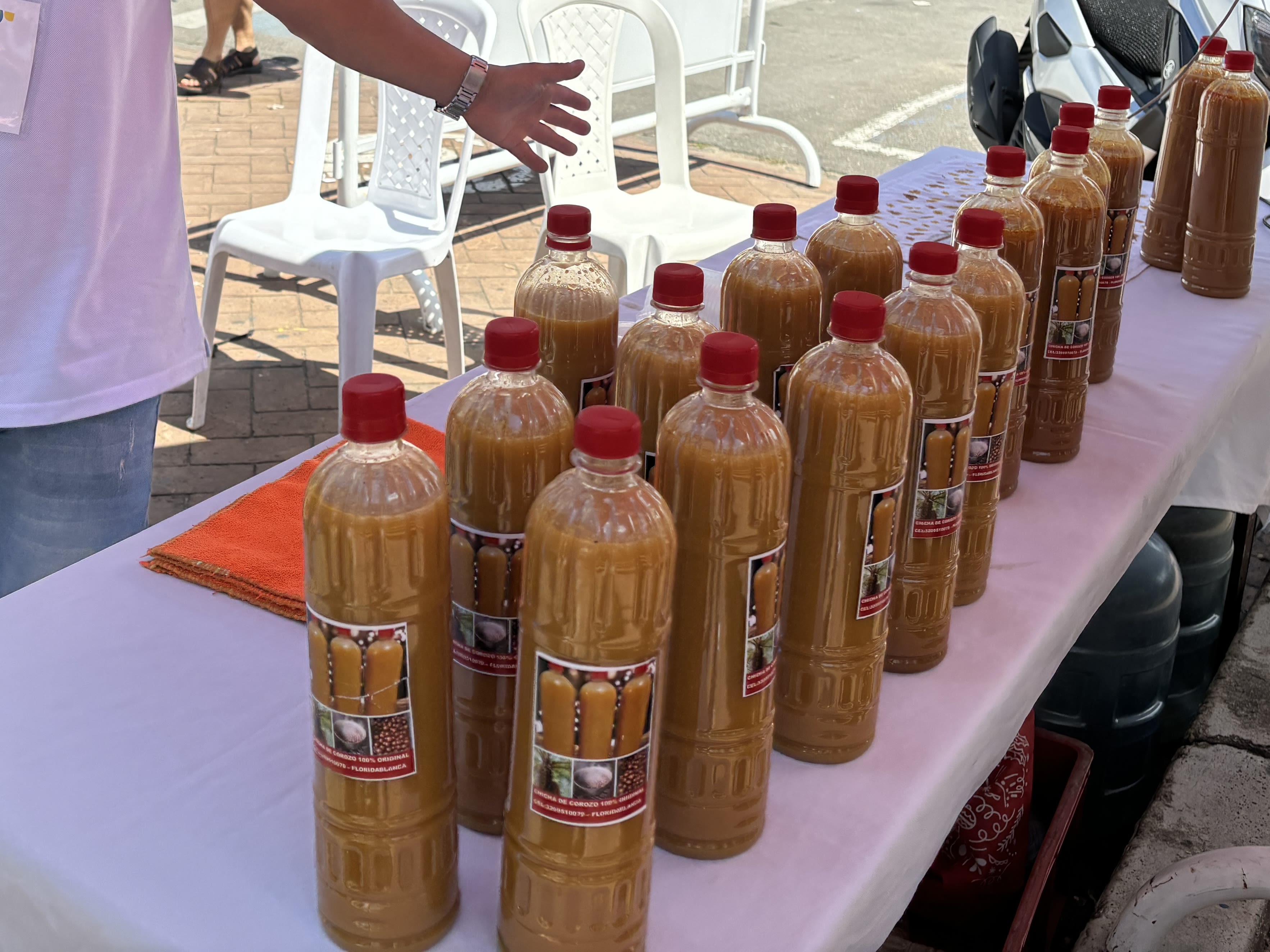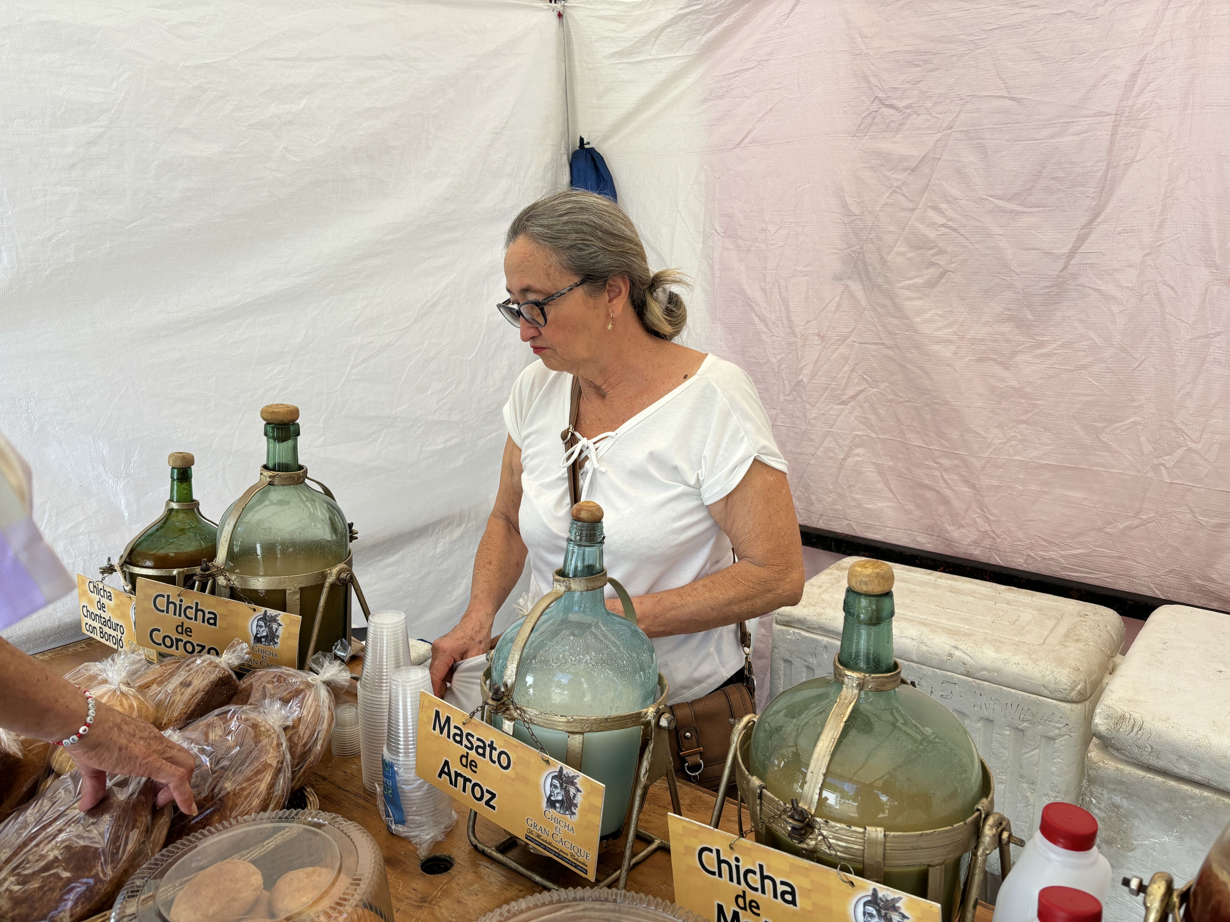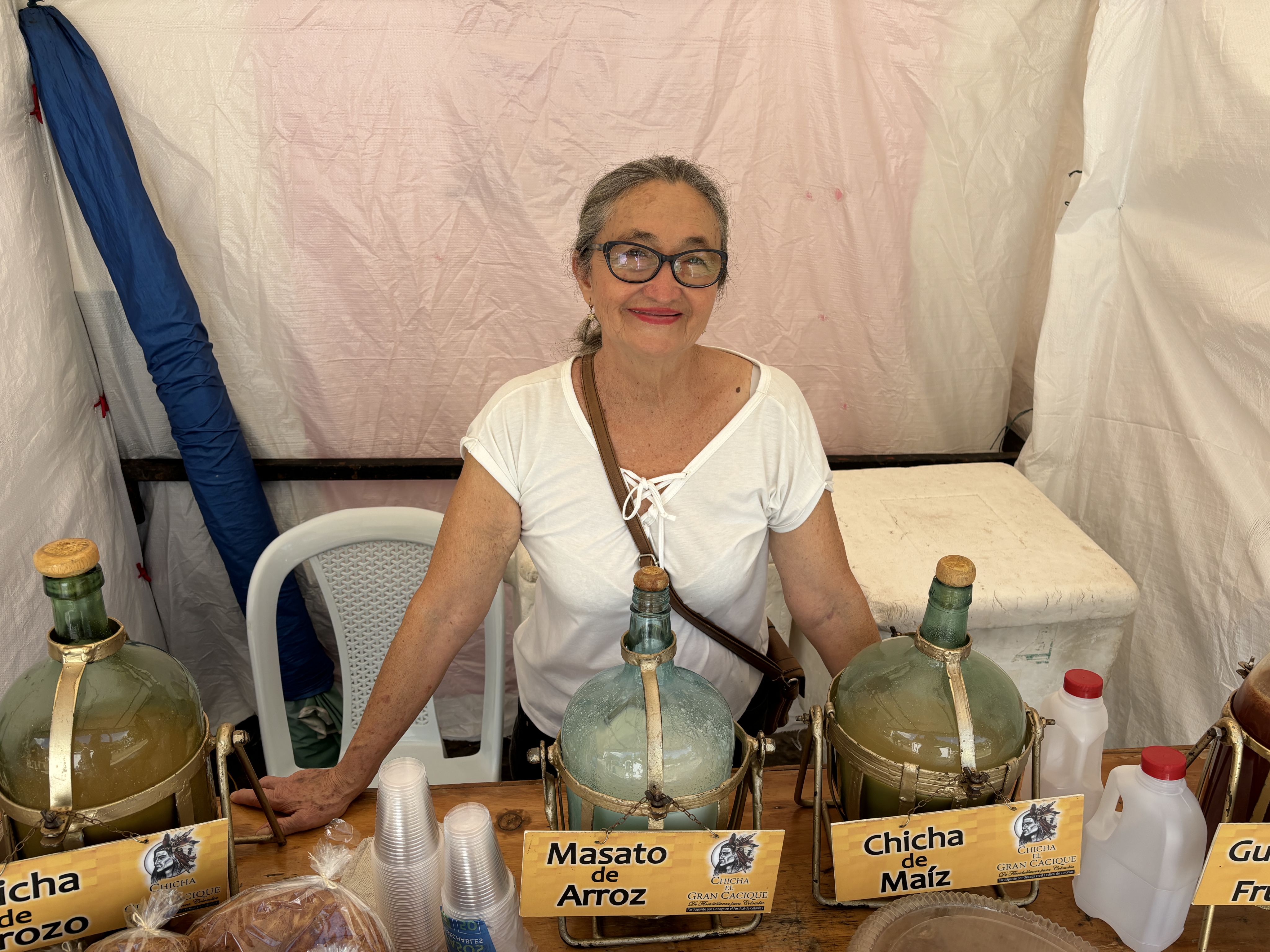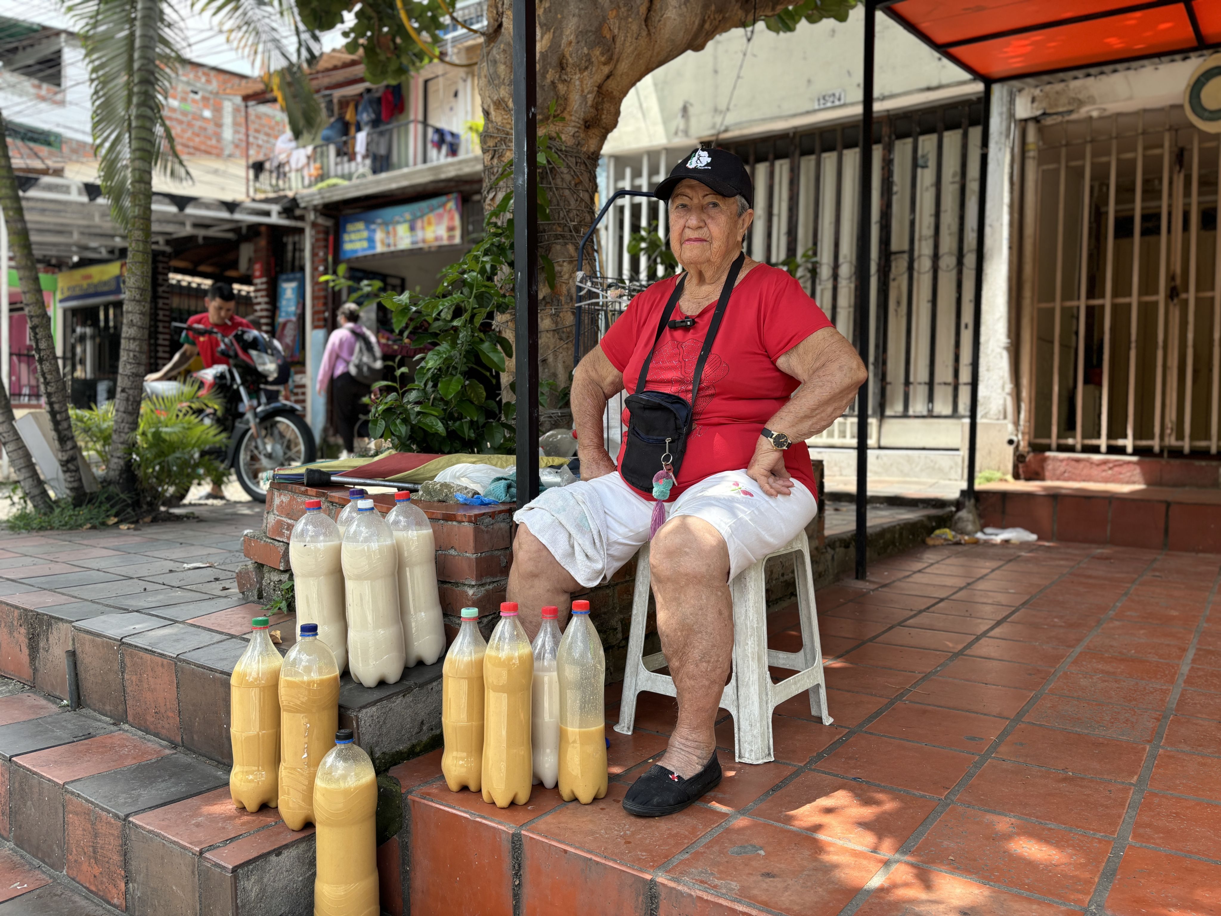 La señora Lilia Duarte Rodríguez vendiendo chicha en Cabecera, Piedecuesta