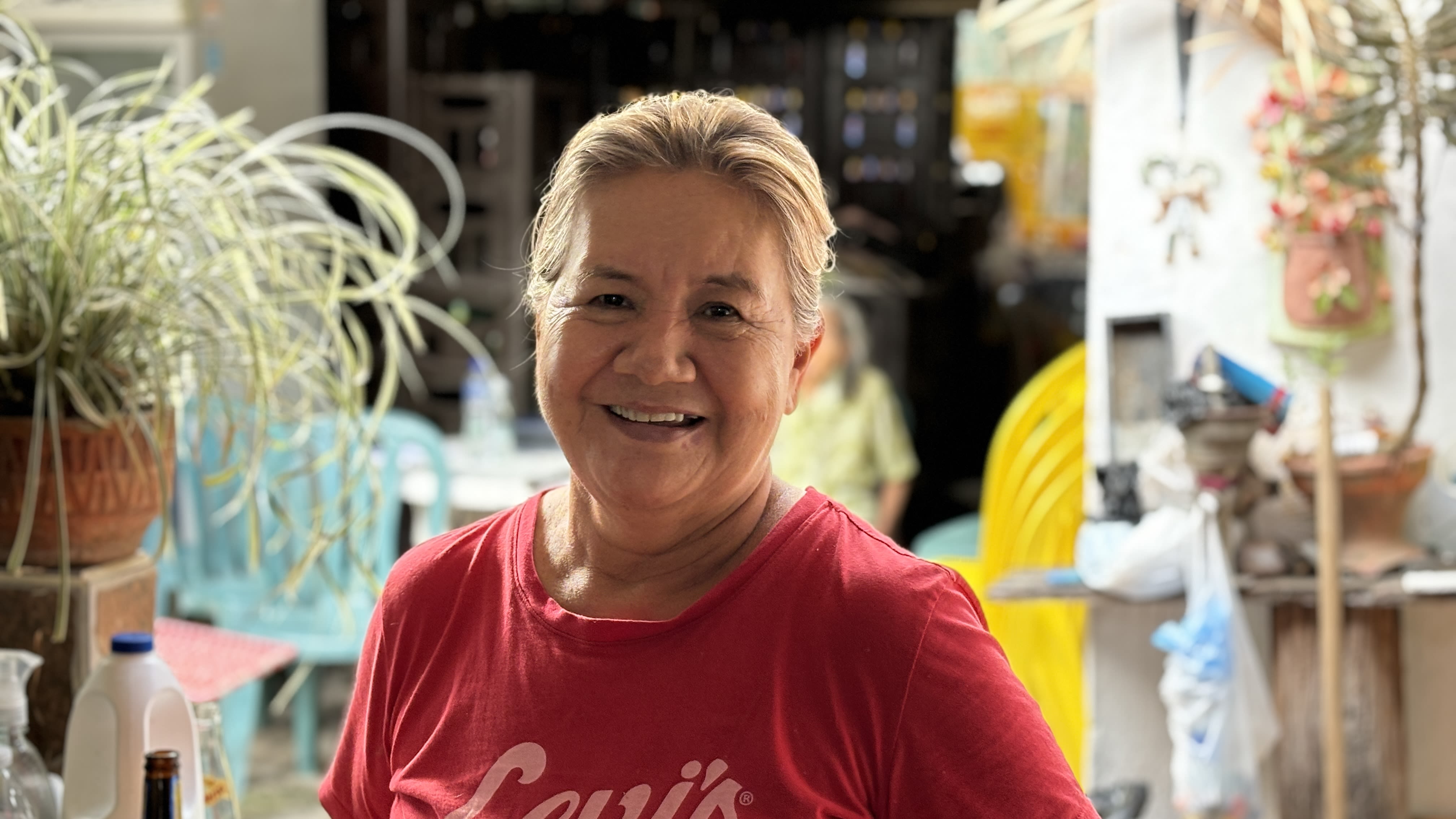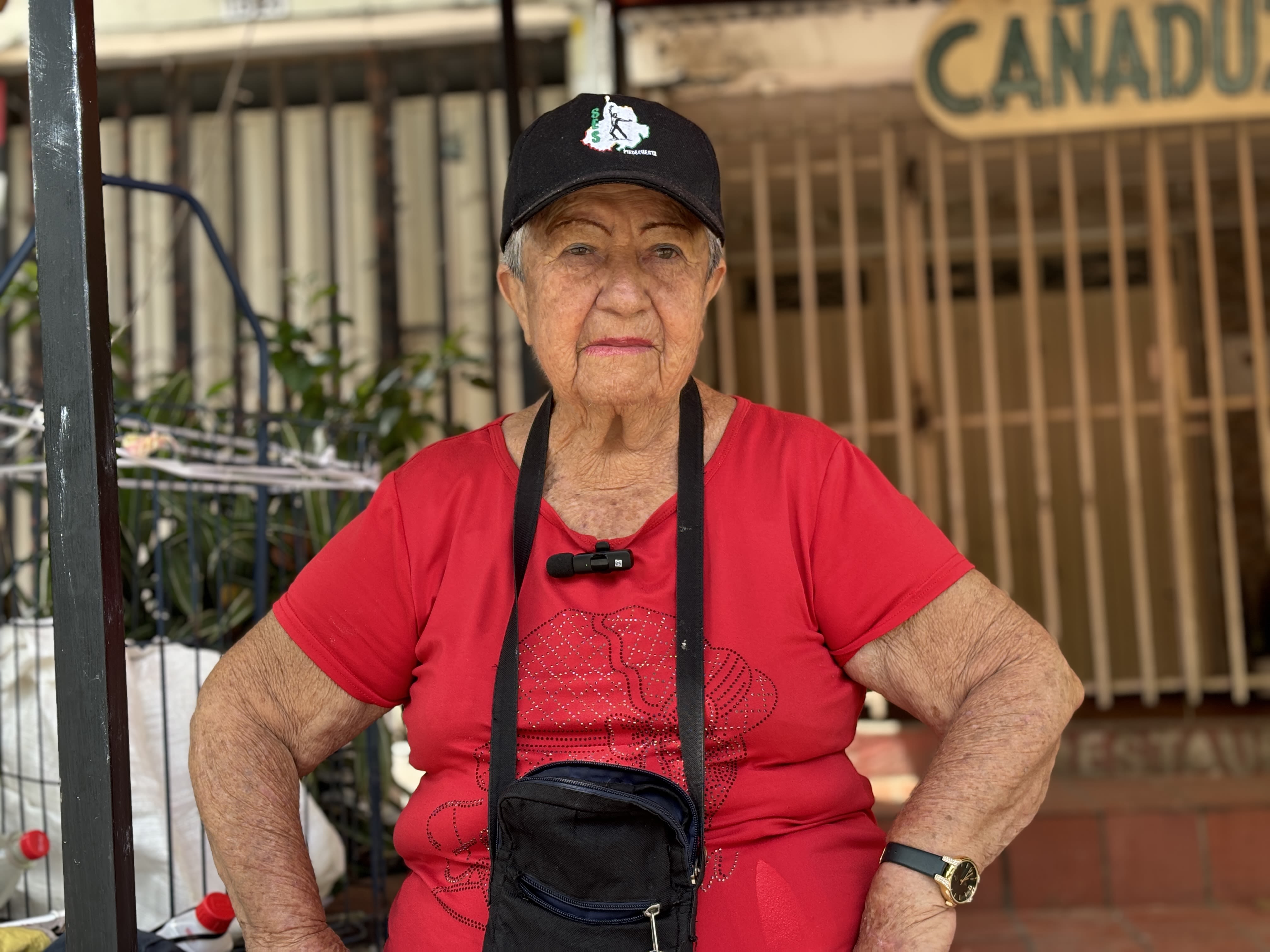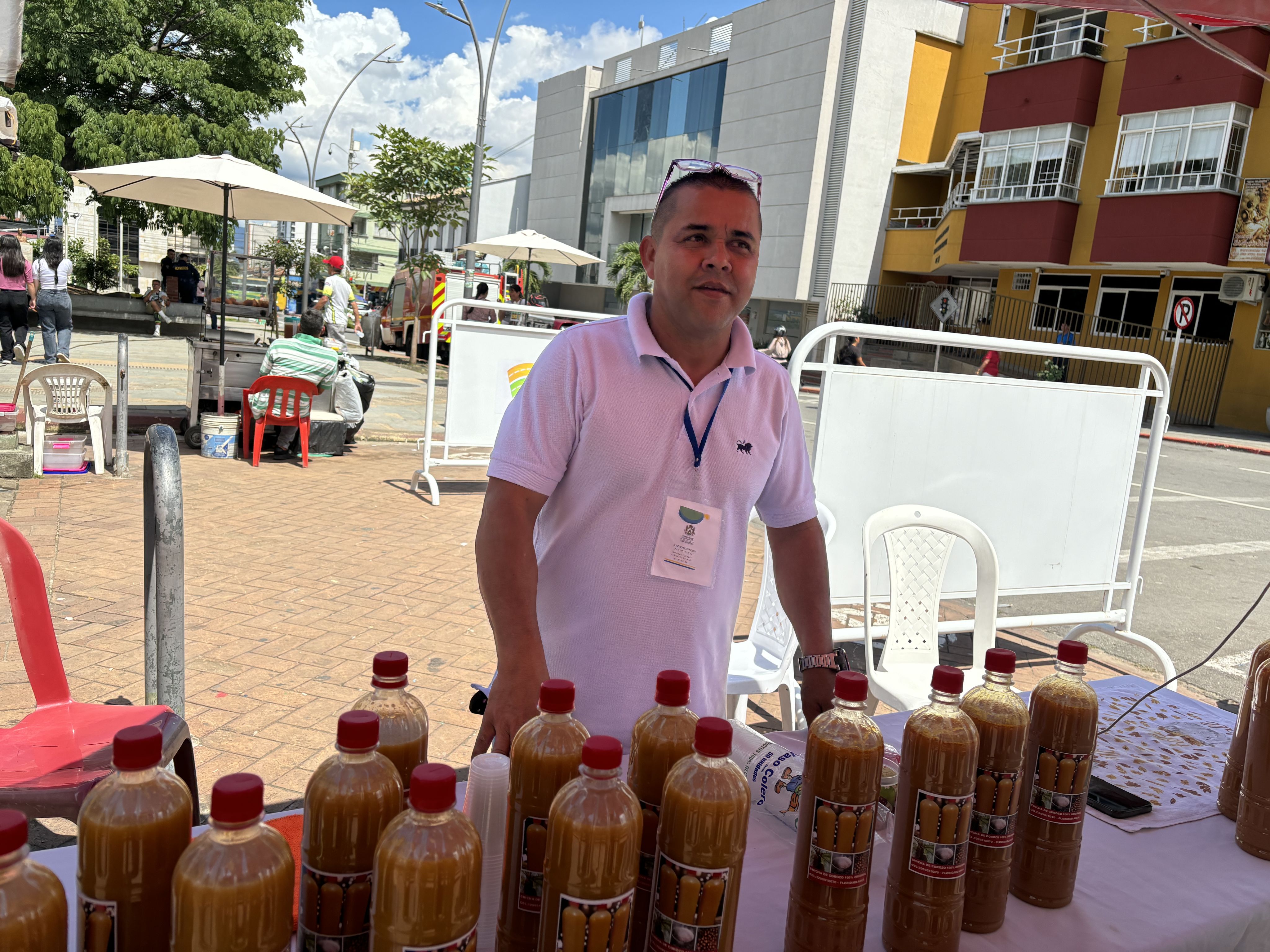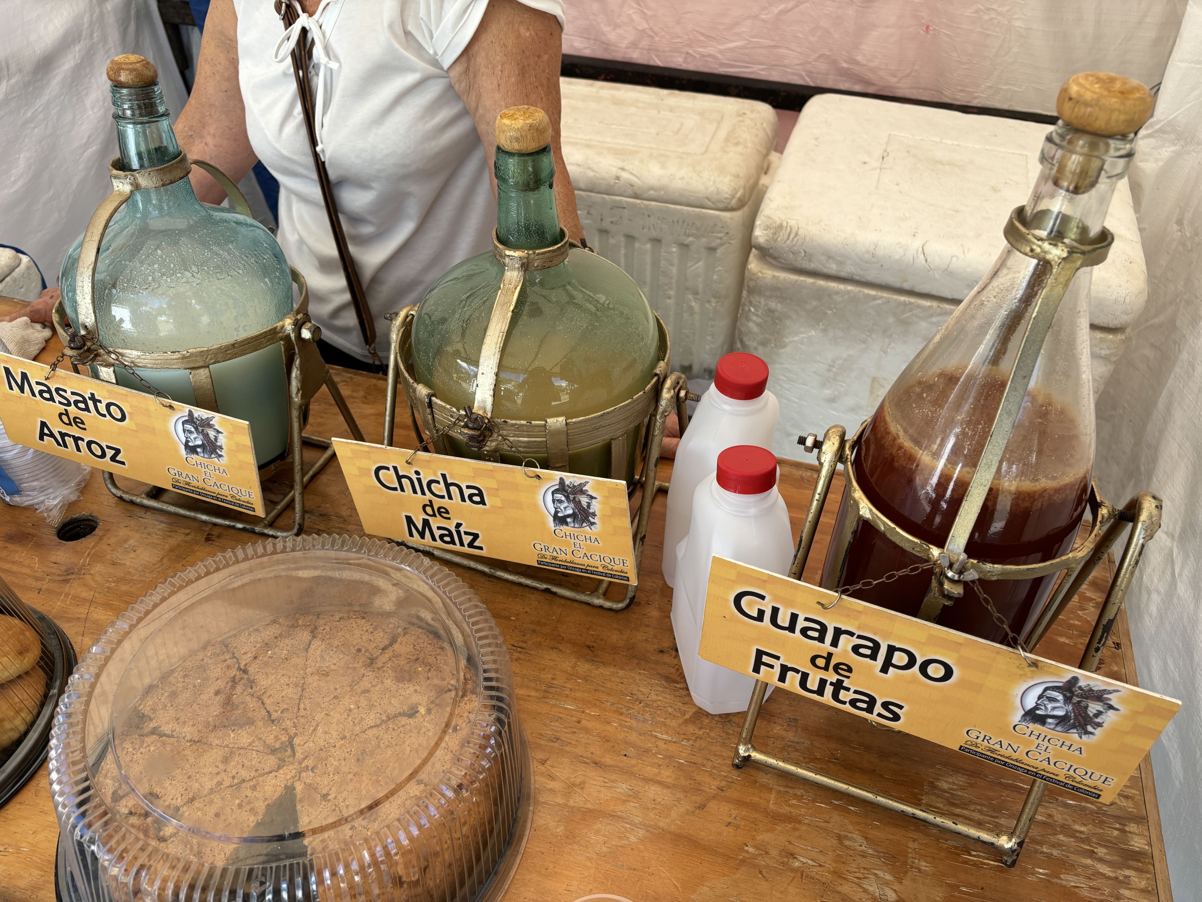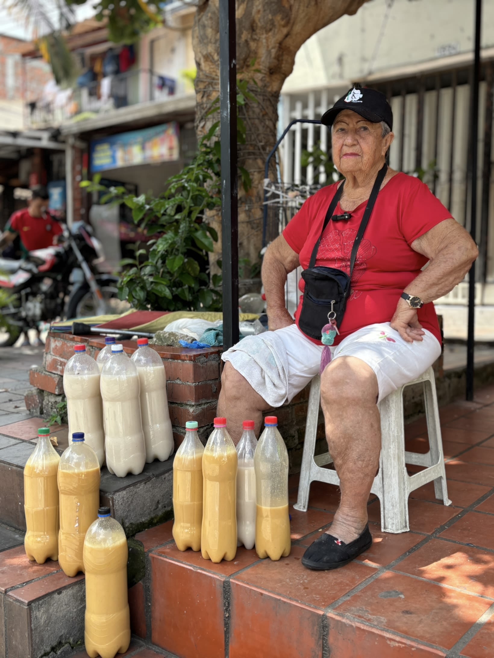 La señora Lilia Duarte Rodríguez vendiendo chicha en Cabecera, Piedecuesta