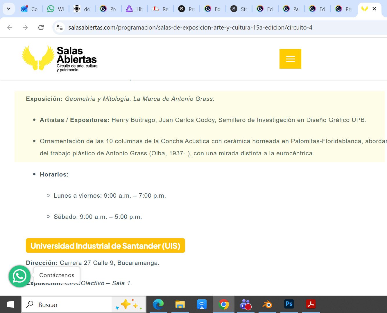 El proyecto logró un grado de reconocimiento que permitió aplicar al evento artístico Salas Abiertas en su 15 año, la curaduría fue realizada por la directora cultural de la Sociedad de Mejoras Públicas la Dra. Claudia Arciniegas Martínez. El Circuito 4 fue el incorporado en los trayectos, la muestra se presento desde el 12 al 17 de septiembre de 2025.