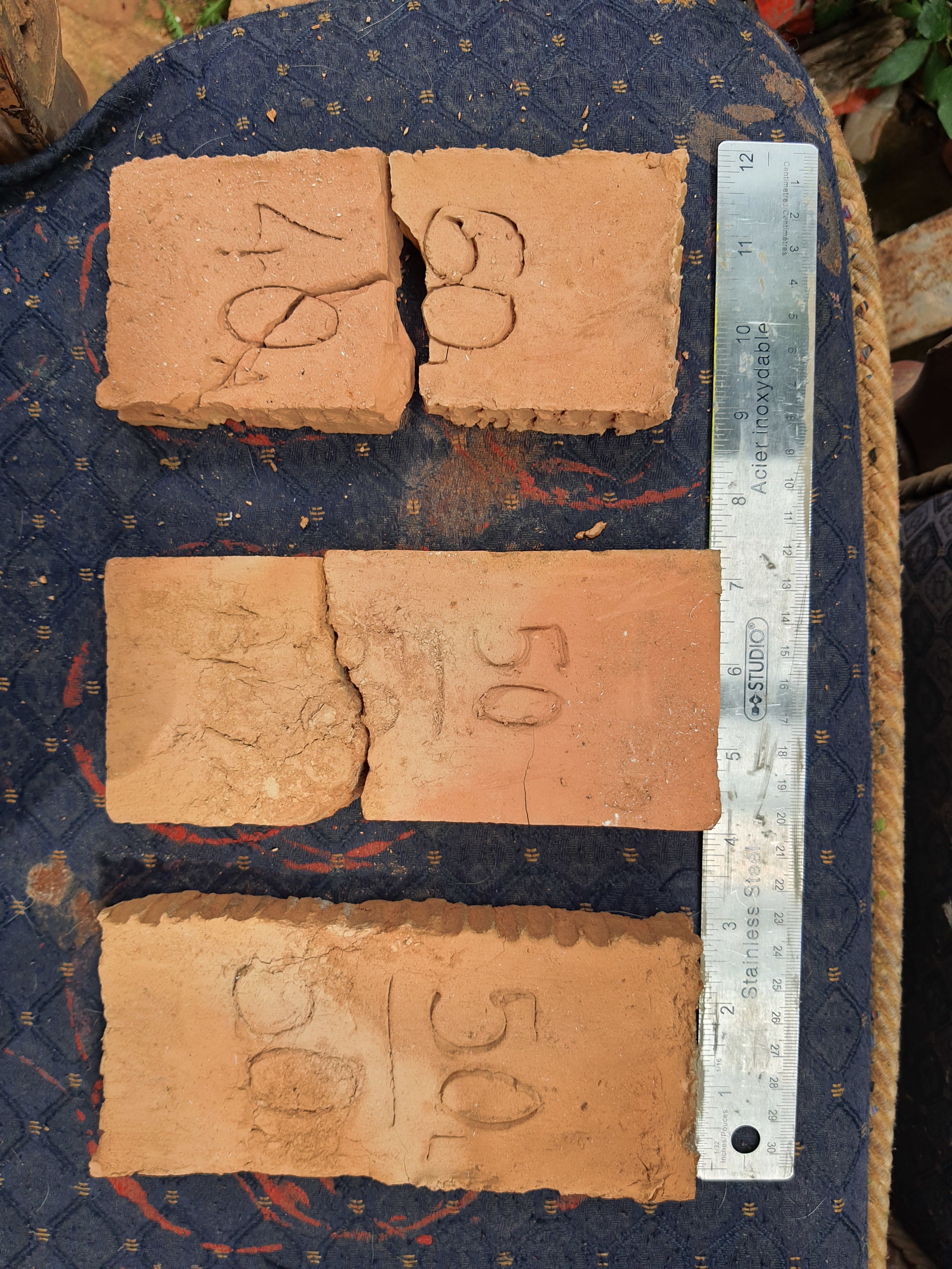 Se realizaron probetas en mezclas, 60 - 40 / 50 - 50 % tanto de lodo como de arcilla para mejorar las características plásticas del material, las probetas se hornearon a 1100 grados centígrados.