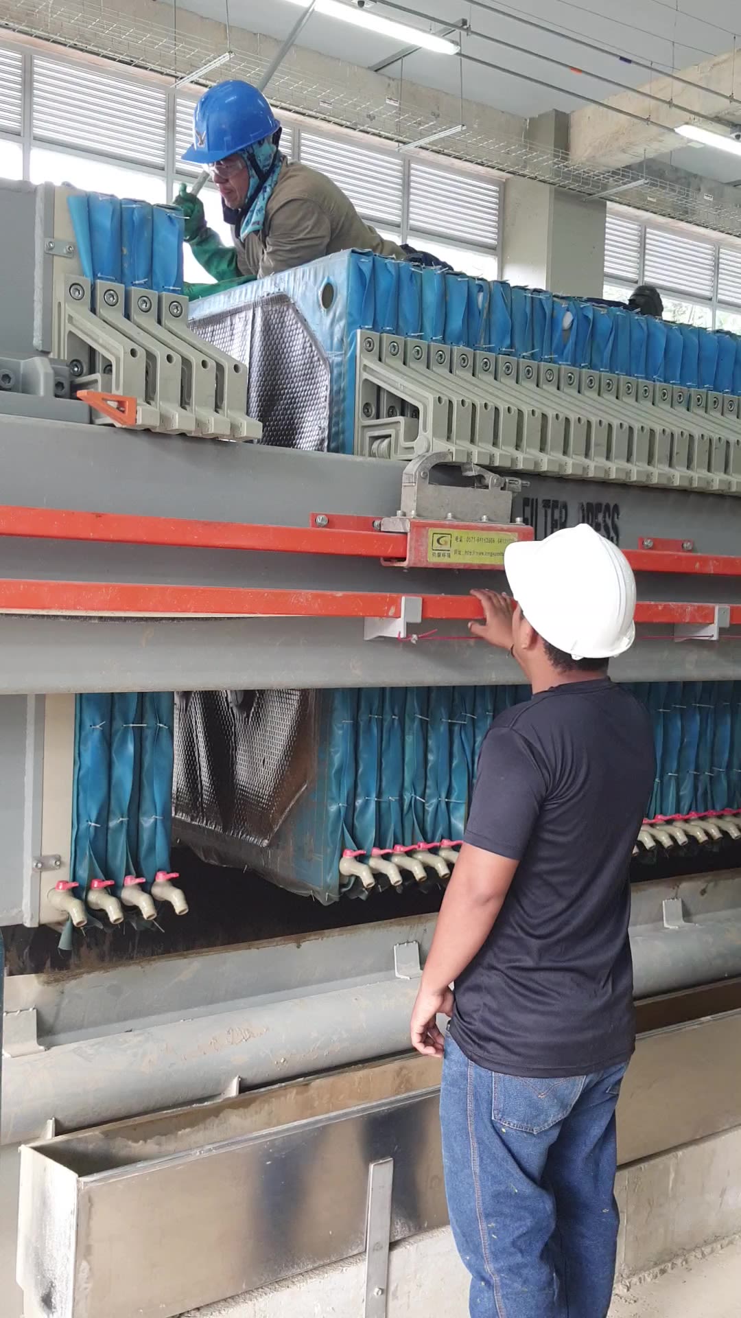 Detalle del proceso de recolección del lodo en dispositivos mecánicos de trabajo pesado.