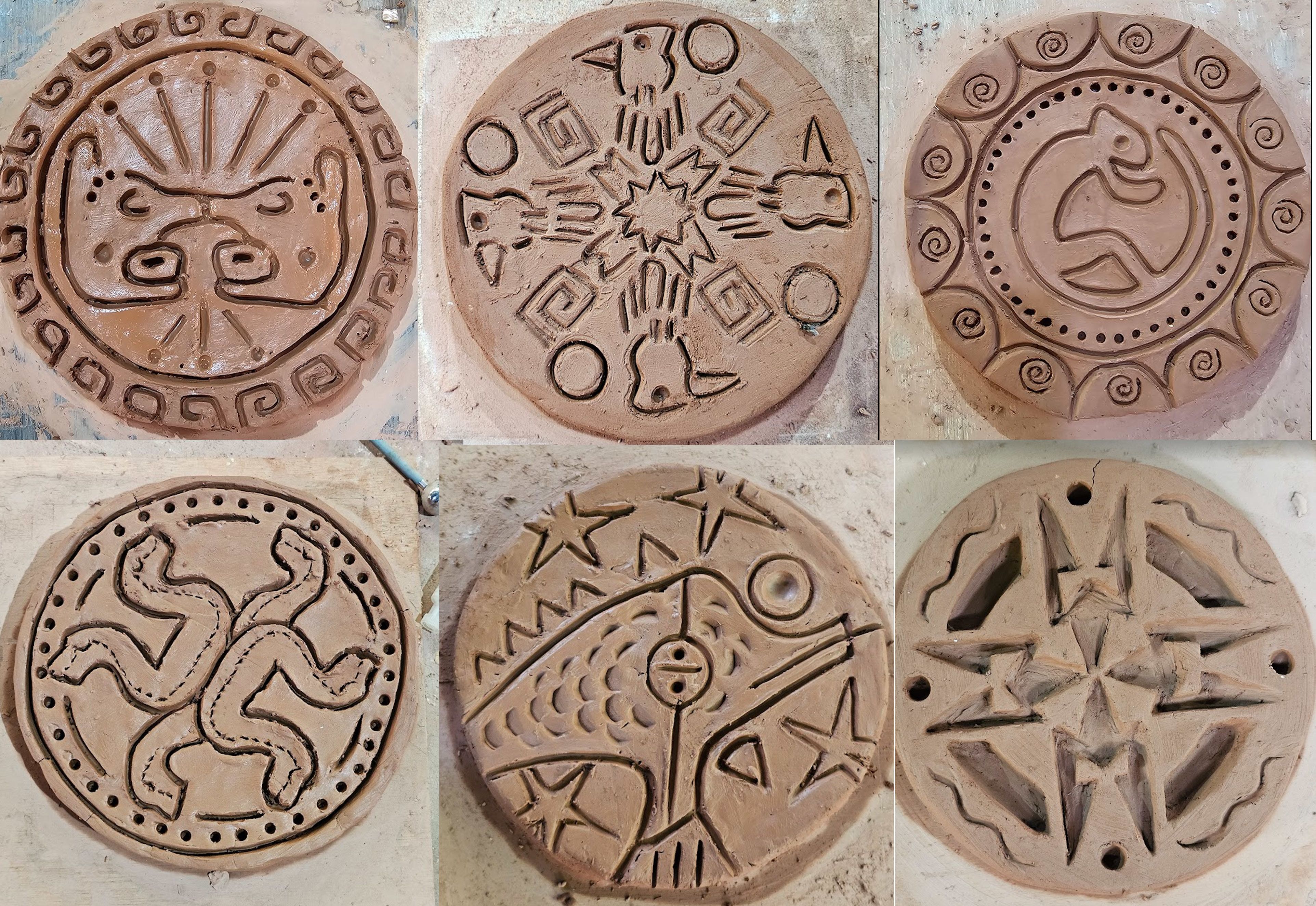 Detalle de 6 obras realizadas con la mezcla 50/50 en estado crudo.